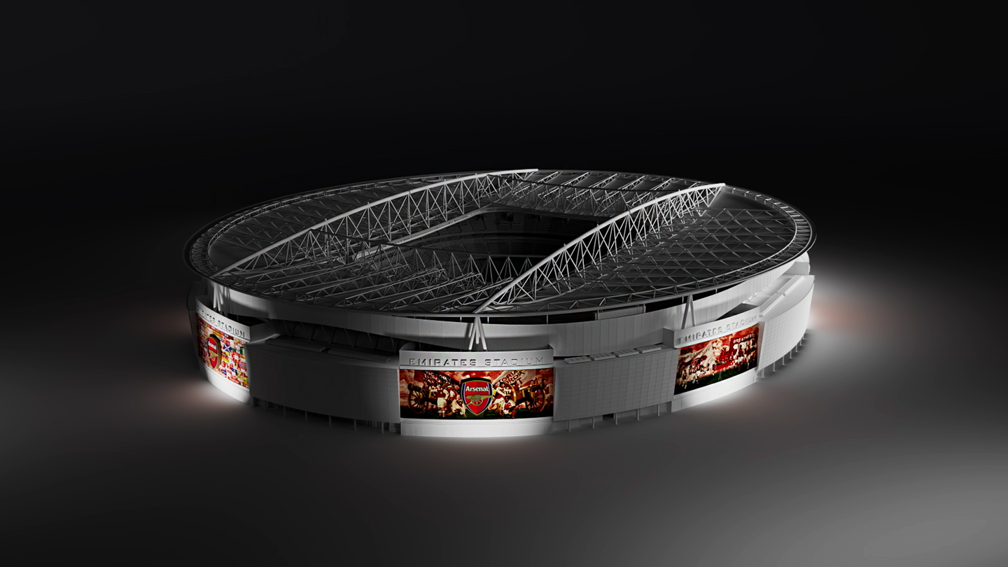 The directors approached the creative with a minimalistic colour palette, in which the historic, vibrant artwork stood out against the clay-textured CG stadium geometry