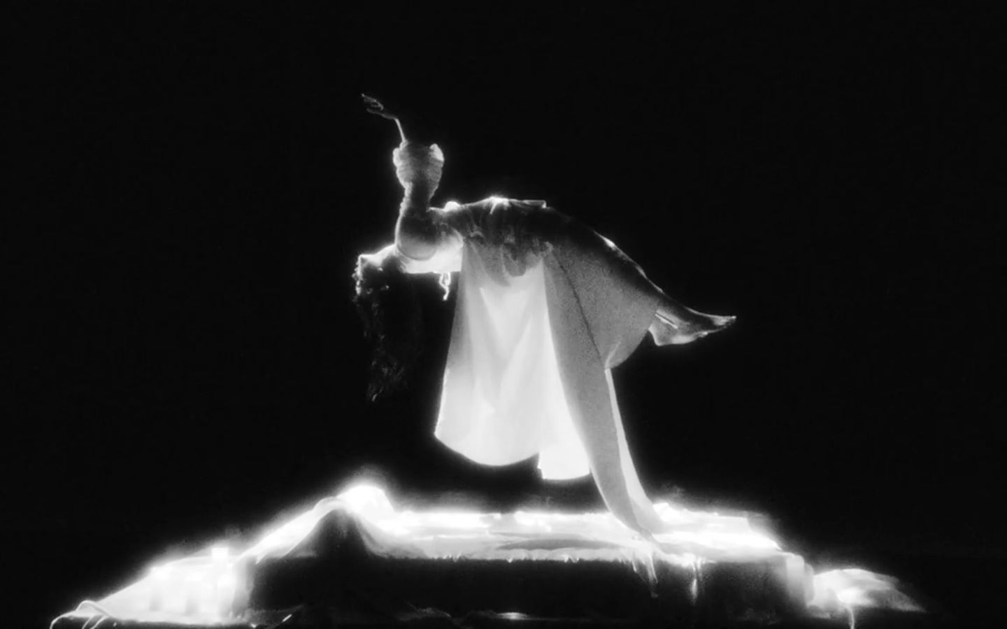 Opening with heavenly monochromatic scenes that feel almost daydream-esque, the video develops into a high-energy hallucination, full of theatrical performance and high contrast lighting.